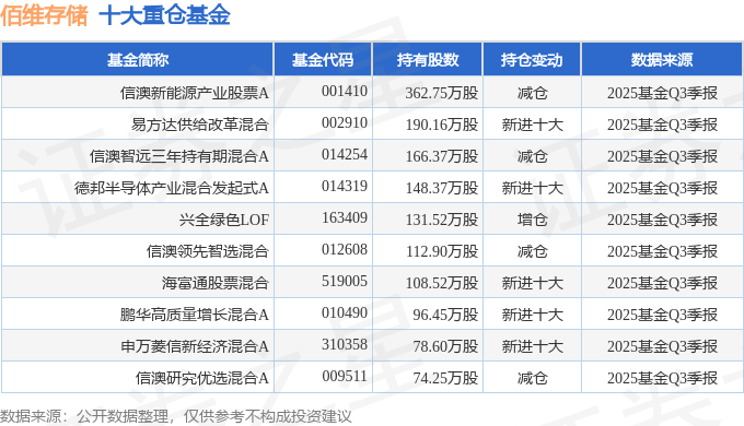持有佰维存储最多的基金为信澳新能源产业股票A,目前规模为72.65亿元,最新净值5.164(10月31日),较上一交易日下跌2.14%,近一年上涨50.09%。该基金现任基金经理为冯明远。