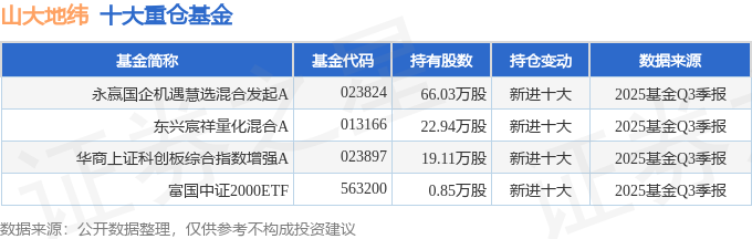 持有山大地纬最多的基金为永赢国企机遇慧选混合发起A,目前规模为0.85亿元,最新净值1.0001(10月31日),较上一交易日下跌0.47%。该基金现任基金经理为王文龙。