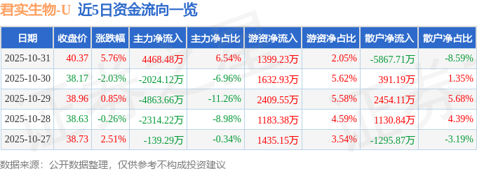 证券之星消息,截至2025年10月31日收盘,君实生物(688180)报收于40.37元,上涨5.76%,换手率2.24%,成交量17.18万手,成交额6.83亿元。