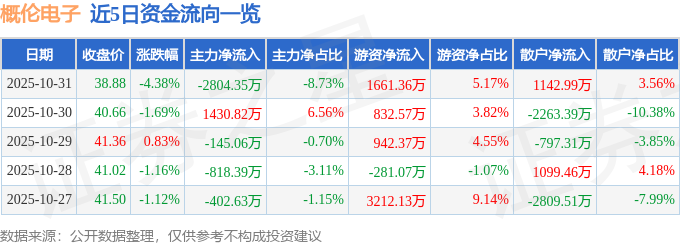 10月31日的资金流向数据方面,主力资金净流出2804.35万元,占总成交额8.73%,游资资金净流入1661.36万元,占总成交额5.17%,散户资金净流入1142.99万元,占总成交额3.56%。