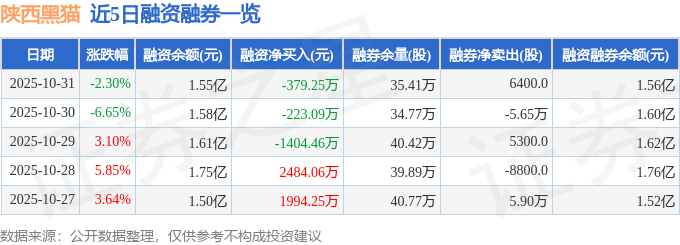 证券之星消息,截至2025年10月31日收盘,陕西黑猫(601015)报收于4.25元,下跌2.3%,换手率3.57%,成交量72.96万手,成交额3.13亿元。