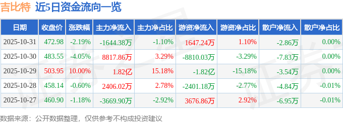 证券之星消息,截至2025年10月31日收盘,吉比特(603444)报收于472.98元,下跌2.19%,换手率4.33%,成交量3.12万手,成交额14.94亿元。