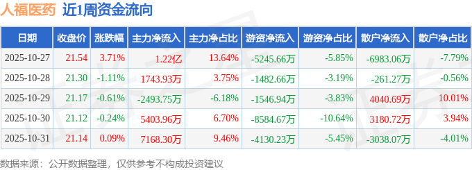 资金流向数据方面,本周人福医药主力资金合计净流入2.41亿元,游资资金合计净流出2.1亿元,散户资金合计净流出3060.99万元。本周资金流向一览见下表: