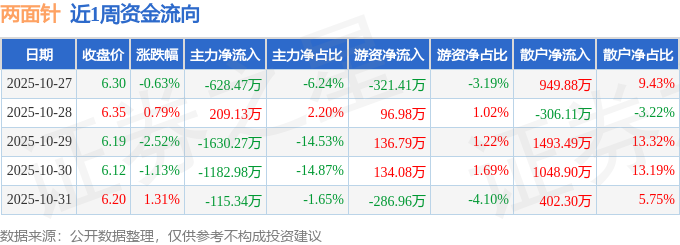 资金流向数据方面,本周两面针主力资金合计净流出3347.93万元,游资资金合计净流出240.53万元,散户资金合计净流入3588.46万元。本周资金流向一览见下表: