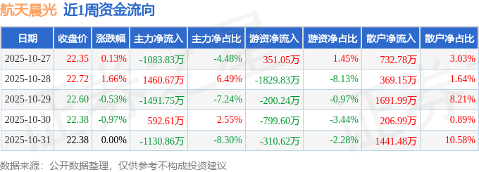 资金流向数据方面,本周航天晨光主力资金合计净流出1653.17万元,游资资金合计净流出2789.23万元,散户资金合计净流入4442.4万元。本周资金流向一览见下表: