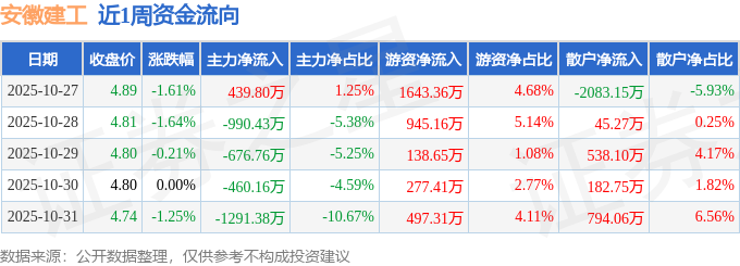 资金流向数据方面,本周安徽建工主力资金合计净流出2978.93万元,游资资金合计净流入3501.9万元,散户资金合计净流出522.97万元。本周资金流向一览见下表: