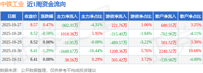 资金流向数据方面,本周中铁工业主力资金合计净流出3306.02万元,游资资金合计净流入1126.57万元,散户资金合计净流入2179.45万元。本周资金流向一览见下表: