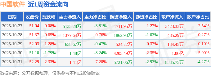 沪深股通持股方面,截止2025年10月31日收盘,中国软件沪股通持股数为1014.0万股,占流通股比为120.0%。