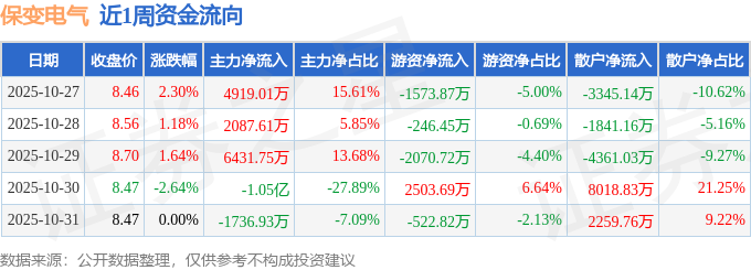 资金流向数据方面,本周保变电气主力资金合计净流入1178.92万元,游资资金合计净流出1910.17万元,散户资金合计净流入731.25万元。本周资金流向一览见下表: