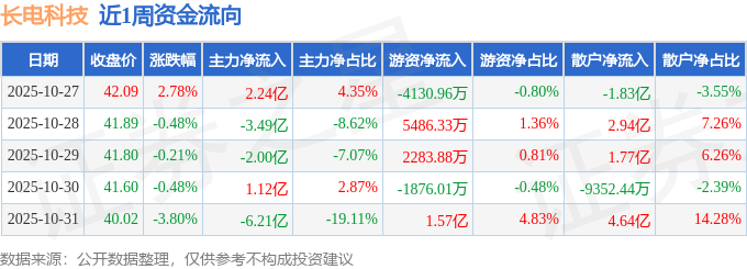 资金流向数据方面,本周长电科技主力资金合计净流出8.34亿元,游资资金合计净流入1.75亿元,散户资金合计净流入6.59亿元。本周资金流向一览见下表:
