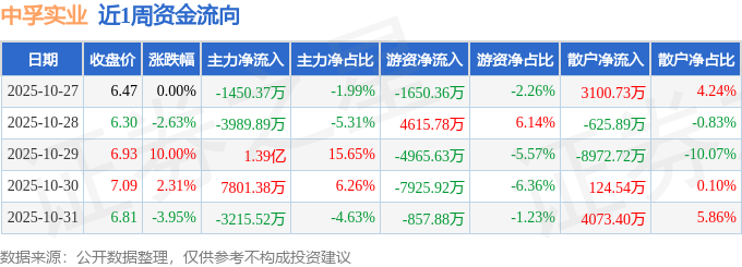 资金流向数据方面,本周中孚实业主力资金合计净流入1.31亿元,游资资金合计净流出1.08亿元,散户资金合计净流出2299.95万元。本周资金流向一览见下表: