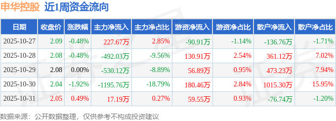 资金流向数据方面,本周申华控股主力资金合计净流出1973.06万元,游资资金合计净流入336.9万元,散户资金合计净流入1636.16万元。本周资金流向一览见下表: