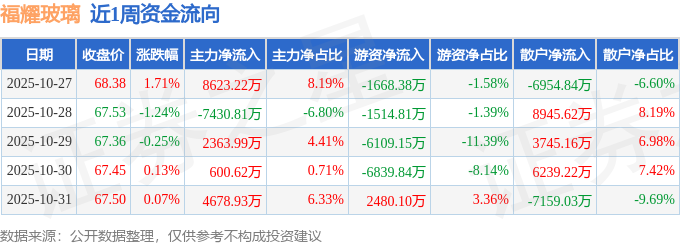 资金流向数据方面,本周福耀玻璃主力资金合计净流入8835.95万元,游资资金合计净流出1.37亿元,散户资金合计净流入4816.14万元。本周资金流向一览见下表: