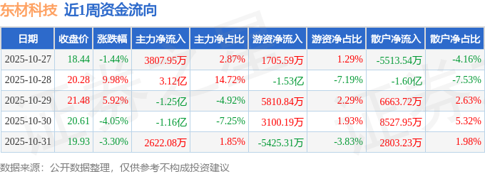 资金流向数据方面,本周东材科技主力资金合计净流入1.35亿元,游资资金合计净流出1.01亿元,散户资金合计净流出3488.42万元。本周资金流向一览见下表: