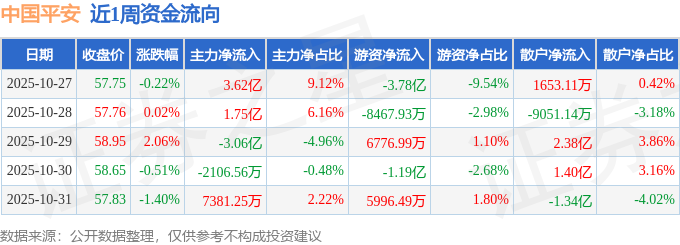 沪深股通持股方面,截止2025年10月31日收盘,中国平安沪股通持股数为5.89亿股,占流通股比为547.0%。