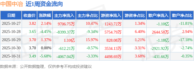 沪深股通持股方面,截止2025年10月31日收盘,中国中冶沪股通持股数为4.03亿股,占流通股比为226.0%。