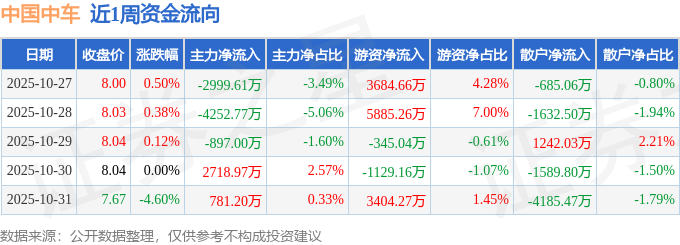 资金流向数据方面,本周中国中车主力资金合计净流出4649.19万元,游资资金合计净流入1.15亿元,散户资金合计净流出6850.8万元。本周资金流向一览见下表: