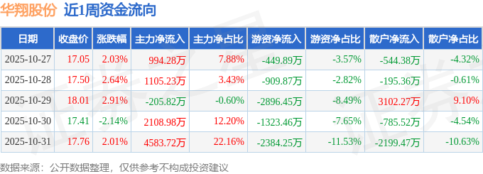 资金流向数据方面,本周华翔股份主力资金合计净流入8586.39万元,游资资金合计净流出7963.93万元,散户资金合计净流出622.46万元。本周资金流向一览见下表: