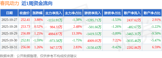 资金流向数据方面,本周春风动力主力资金合计净流入4691.28万元,游资资金合计净流出2348.31万元,散户资金合计净流出2342.97万元。本周资金流向一览见下表: