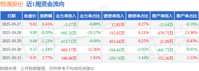 资金流向数据方面,本周恒通股份主力资金合计净流出678.61万元,游资资金合计净流入280.93万元,散户资金合计净流入397.68万元。本周资金流向一览见下表:
