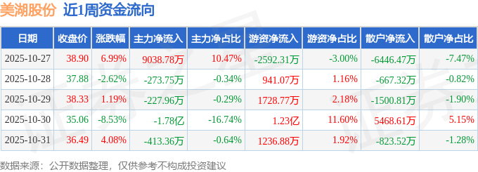 资金流向数据方面,本周美湖股份主力资金合计净流出9668.39万元,游资资金合计净流入1.36亿元,散户资金合计净流出3969.51万元。本周资金流向一览见下表: