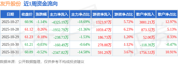 资金流向数据方面,本周友升股份主力资金合计净流出9005.02万元,游资资金合计净流入3440.34万元,散户资金合计净流入5564.67万元。本周资金流向一览见下表: