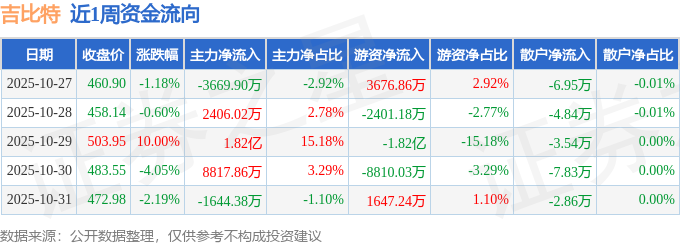 资金流向数据方面,本周吉比特主力资金合计净流入2.41亿元,游资资金合计净流出2.41亿元,散户资金合计净流出26.02万元。本周资金流向一览见下表: