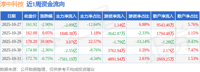 资金流向数据方面,本周淳中科技主力资金合计净流出2.14亿元,游资资金合计净流出1477.55万元,散户资金合计净流入2.29亿元。本周资金流向一览见下表: