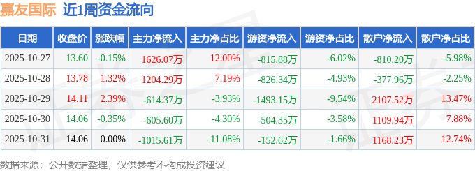 资金流向数据方面,本周嘉友国际主力资金合计净流入594.8万元,游资资金合计净流出3792.34万元,散户资金合计净流入3197.54万元。本周资金流向一览见下表: