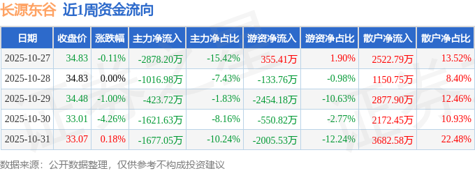 沪深股通持股方面,截止2025年10月31日收盘,长源东谷沪股通持股数为65.95万股,占流通股比为20.0%。
