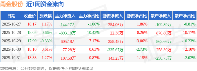 资金流向数据方面,本周甬金股份主力资金合计净流出247.39万元,游资资金合计净流入342.5万元,散户资金合计净流出95.11万元。本周资金流向一览见下表: