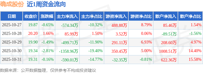 资金流向数据方面,本周确成股份主力资金合计净流出2937.02万元,游资资金合计净流入1101.6万元,散户资金合计净流入1835.43万元。本周资金流向一览见下表: