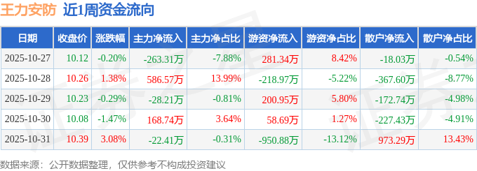 资金流向数据方面,本周王力安防主力资金合计净流入441.38万元,游资资金合计净流出628.88万元,散户资金合计净流入187.49万元。本周资金流向一览见下表: