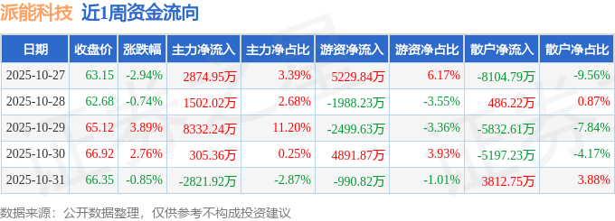 资金流向数据方面,本周派能科技主力资金合计净流入1.02亿元,游资资金合计净流入4643.03万元,散户资金合计净流出1.48亿元。本周资金流向一览见下表: