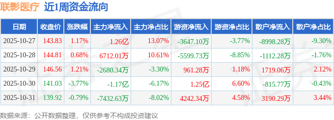 资金流向数据方面,本周联影医疗主力资金合计净流出2469.9万元,游资资金合计净流入8486.87万元,散户资金合计净流出6016.97万元。本周资金流向一览见下表: