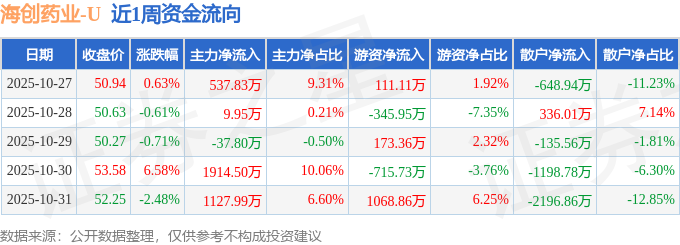 资金流向数据方面,本周海创药业主力资金合计净流入3552.48万元,游资资金合计净流入291.65万元,散户资金合计净流出3844.13万元。本周资金流向一览见下表: