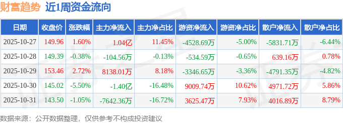 资金流向数据方面,本周财富趋势主力资金合计净流出3229.98万元,游资资金合计净流入4225.28万元,散户资金合计净流出995.3万元。本周资金流向一览见下表: