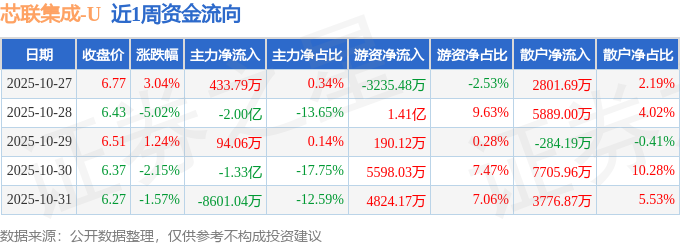 资金流向数据方面,本周芯联集成主力资金合计净流出4.14亿元,游资资金合计净流入2.15亿元,散户资金合计净流入1.99亿元。本周资金流向一览见下表: