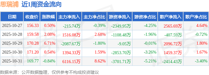 资金流向数据方面,本周思瑞浦主力资金合计净流入6723.15万元,游资资金合计净流出1.0亿元,散户资金合计净流入3299.75万元。本周资金流向一览见下表: