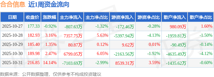 资金流向数据方面,本周合合信息主力资金合计净流入6326.35万元,游资资金合计净流入814.96万元,散户资金合计净流出7141.31万元。本周资金流向一览见下表: