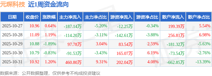资金流向数据方面,本周元琛科技主力资金合计净流入165.72万元,游资资金合计净流入295.79万元,散户资金合计净流出461.51万元。本周资金流向一览见下表: