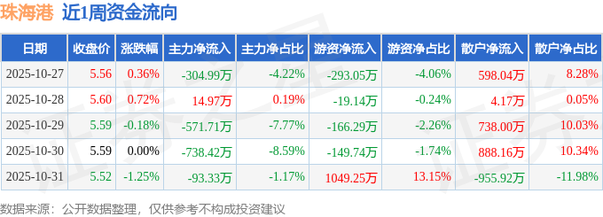 沪深股通持股方面,截止2025年10月31日收盘,珠海港深股通持股数为268.26万股,占流通股比为30.0%。