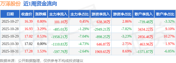 资金流向数据方面,本周万泽股份主力资金合计净流出4050.74万元,游资资金合计净流出592.55万元,散户资金合计净流入4643.3万元。本周资金流向一览见下表: