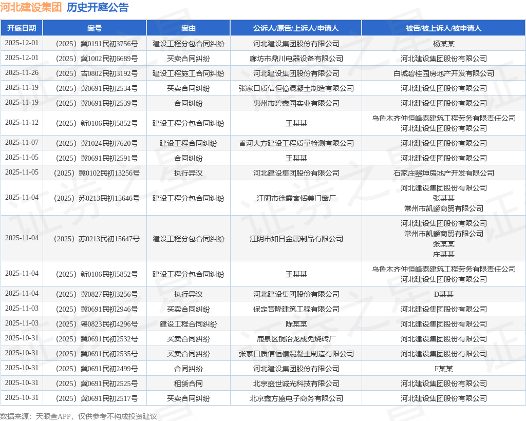 证券之星消息,根据天眼查APP显示,近日公布了一则河北建设集团股份有限公司作为原告/上诉人的开庭公告,详细内容如下: