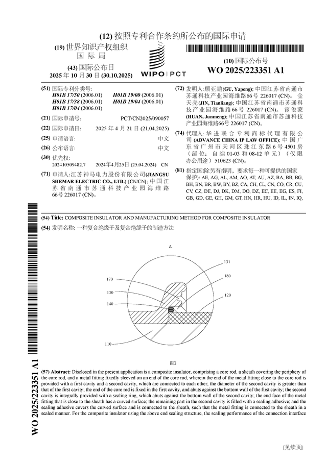 证券之星消息,根据企查查数据显示神马电力(603530)公布了一项国际专利申请,专利名为“一种复合绝缘子及复合绝缘子的制造方法”,专利申请号为PCT/CN2025/090057,国际公布日为2025年10月30日。