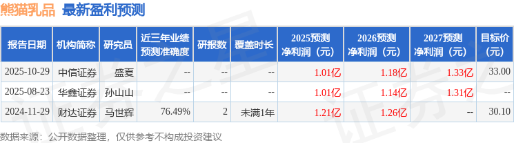 2025年10月28日,熊猫乳品发布2025年三季度报告。2025Q1-Q3总营业收入5.86亿元(同增3%),归母净利润0.72亿元(同减8%),扣非净利润0.63亿元(同减8%)。其中2025Q3总营业收入2.33亿元(同增12%),归母净利润0.30亿元(同减1%),扣非净利润0.30亿元(同增4%)。