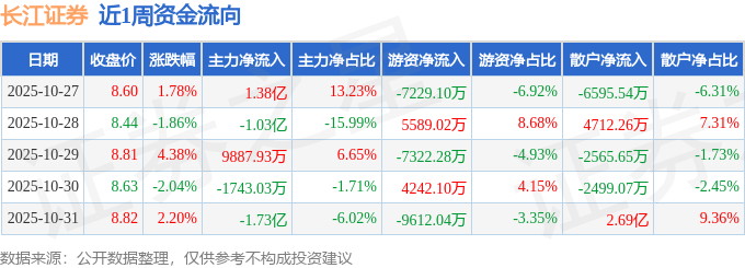 资金流向数据方面,本周长江证券主力资金合计净流出5616.54万元,游资资金合计净流出1.43亿元,散户资金合计净流入1.99亿元。本周资金流向一览见下表: