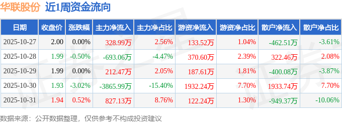资金流向数据方面,本周华联股份主力资金合计净流出3190.47万元,游资资金合计净流入2746.22万元,散户资金合计净流入444.25万元。本周资金流向一览见下表: