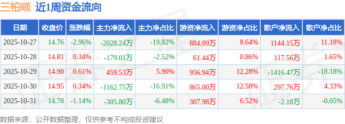 资金流向数据方面,本周三柏硕主力资金合计净流出3216.27万元,游资资金合计净流入3075.44万元,散户资金合计净流入140.83万元。本周资金流向一览见下表: