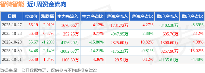 资金流向数据方面,本周智微智能主力资金合计净流出4179.67万元,游资资金合计净流入3463.66万元,散户资金合计净流入716.01万元。本周资金流向一览见下表: